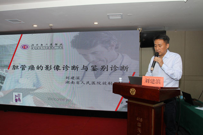 湖南省人民醫(yī)院放射科主任、湖南省醫(yī)學會放射學專業(yè)委員會副主任委員兼腹部學組組長劉建濱教授致辭并做專題學術報告