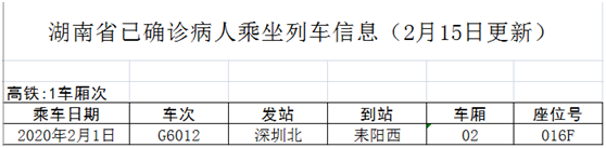 附件:湖南省已確診病人乘坐列車及信息(2月15日更新)