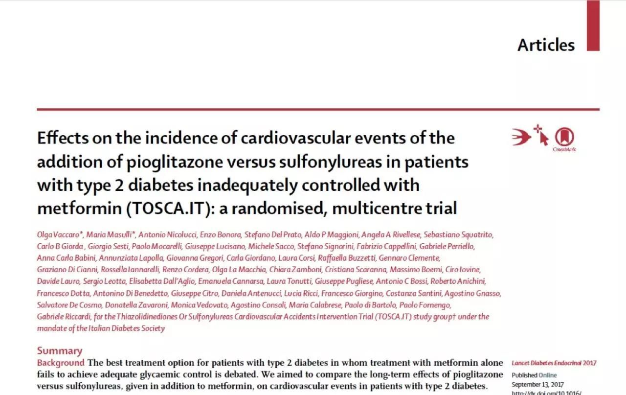 9月13日,在2017年歐洲糖尿病研究學(xué)會(EASD)年會上,來自意大利長達(dá)10年的大型多中心、頭對頭隨機(jī)對照研究TOSCA.IT為我們“揭曉”了答案。該研究也于Lancet Diabetes Endocrinol雜志同步發(fā)表。