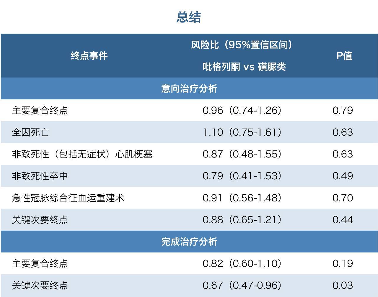4考慮到吡格列酮的使用,研究除外了心衰的患者(NYHA分級Ⅰ-Ⅳ級);