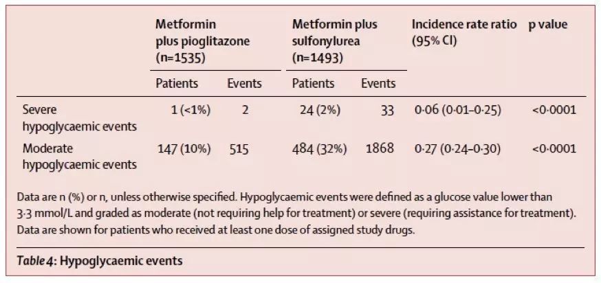 2吡格列酮低血糖風(fēng)險更低,從HbA1c水平和非胰島素治療持續(xù)時間來看,降糖效果或更佳。