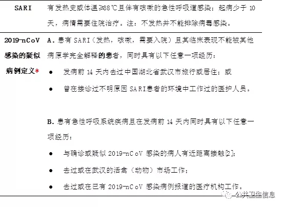 表1. 疑似2019-nCoV感染的SARI患者定義*